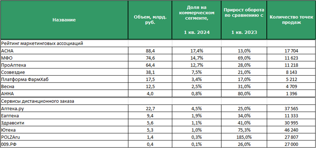 Рейтинг ассоциаций и аптечных площадок по итогам 1 квартала 2024 года