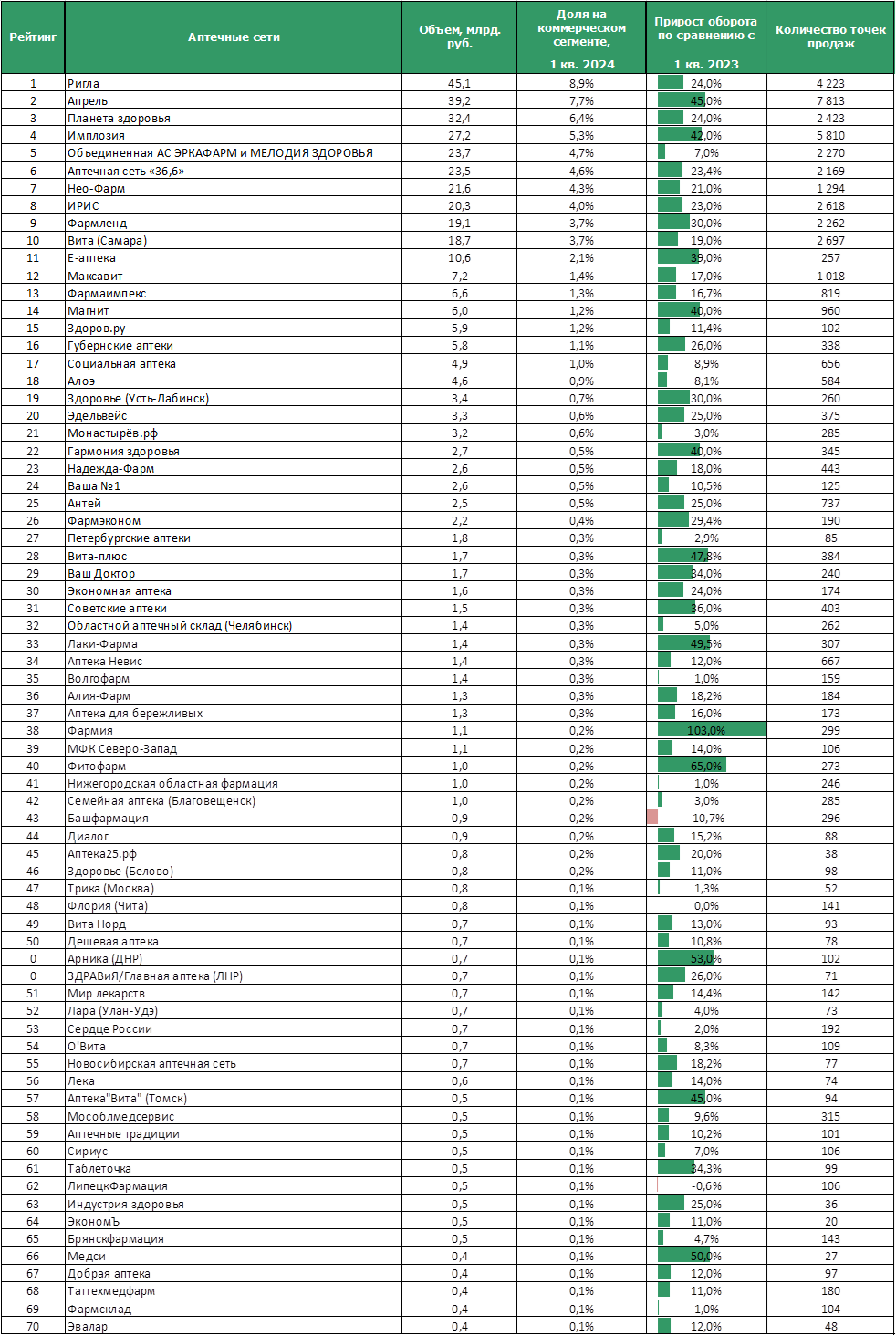 Рейтинг аптечных сетей по итогам 1 квартала 2024 года