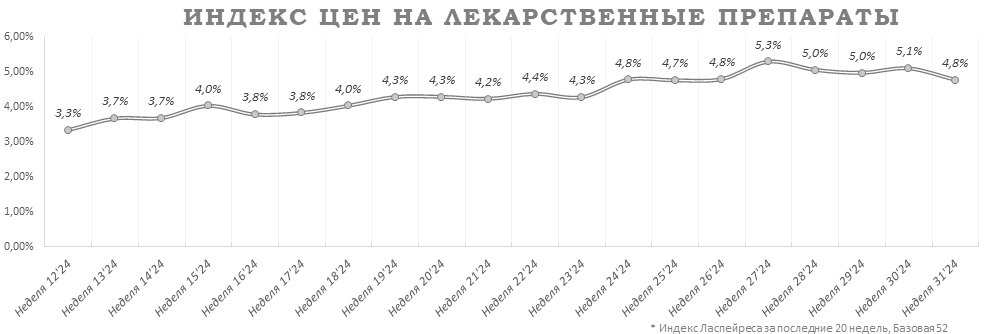 Индекс цен на лекарственные препараты на 31-й неделе составил 4,8%.