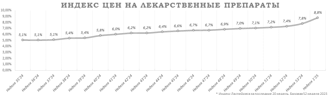 Индекс цен на ЛП на 1-й неделе составил 8,8%.