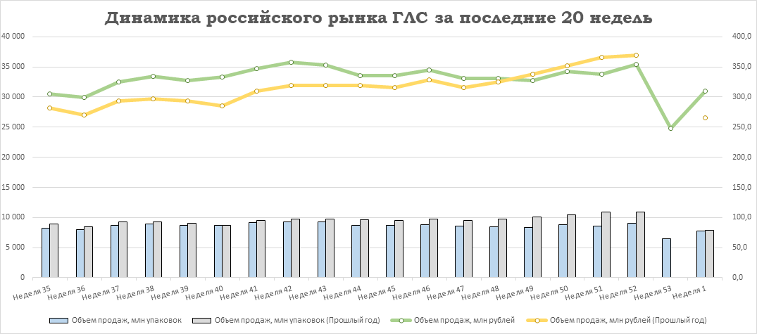 Динамика рынка неделя 1 '2025 vs неделя 53 '2024+0 '2025