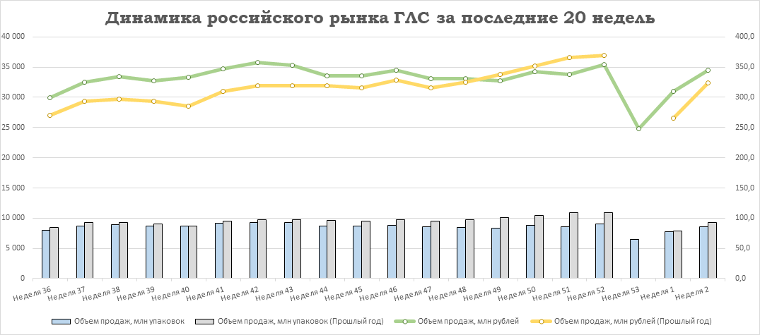 Динамика рынка неделя 2 '2025 vs неделя 2 '2024
